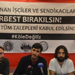 DİSK Genel Merkezi toplantı salonunda bir araya gelen sendikalar “Tutuklanan işçiler ve sendikacılar serbest bırakılsın. İşçilerin tüm talepleri kabul edilsin. Köle değiliz” şiarıyla bir açıklama gerçekleştirdi. İnşaat İş, Dev-Yapı İş ve Devrimci İşçi Sendikaları Konfederasyonu’na (DİSK) bağlı İnşaat ve Yapı İşçileri Sendikası (İYİ-SEN) geçtiğimiz günlerde kötü çalışma koşullarına itiraz ederek eylem yapan ve sonrasında tutuklanan […]